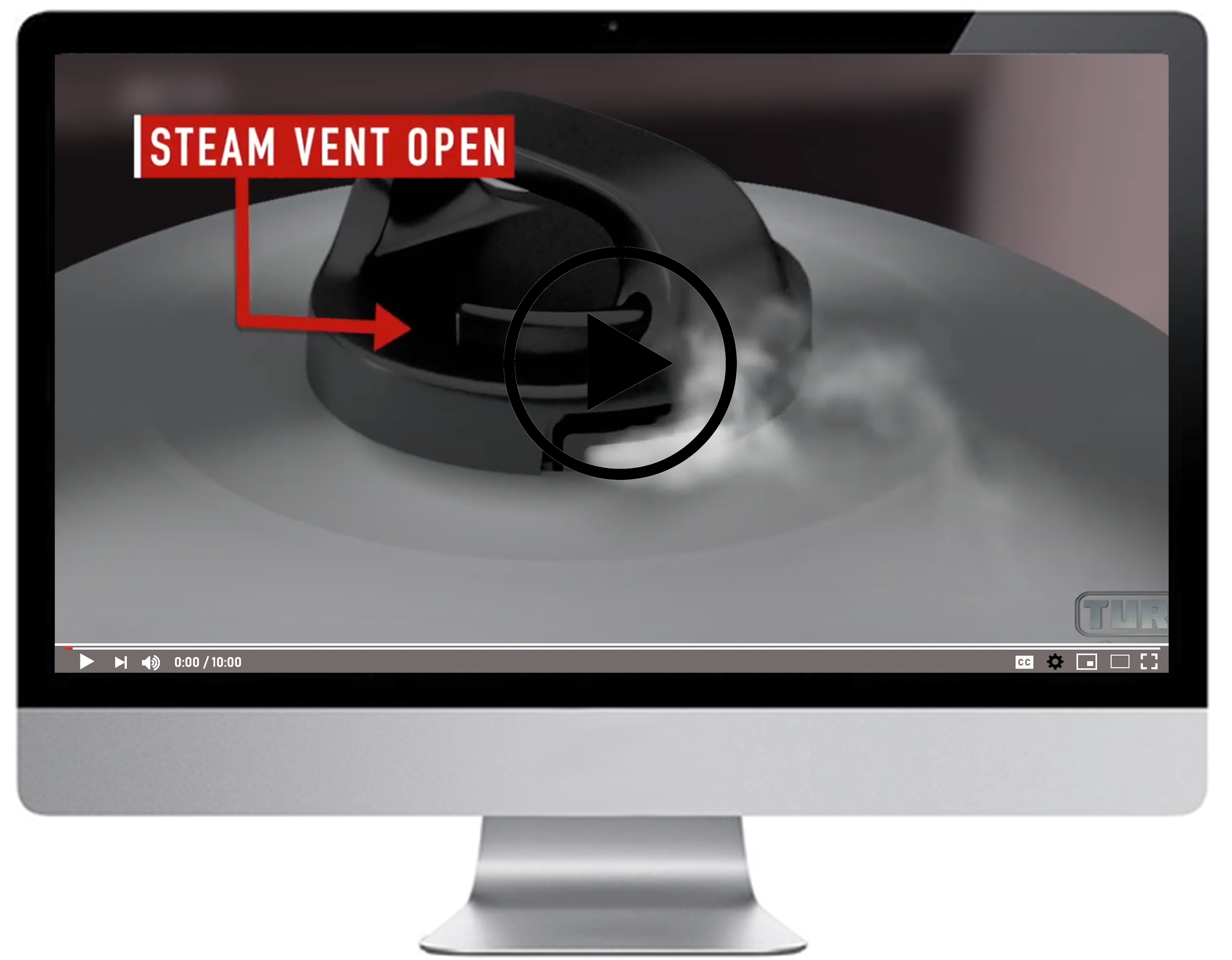 The TurboCooker’s Valve sits atop the dome cover and either keeps the steam from escaping the cooker or releases the steam, depending on the setting.